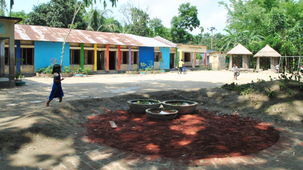 In Bangladesh the net enrolment rate at primary schools is nearly 100%, but only 32% of the children reach higher secondary level (typically completed at ages 16-18). There are many reasons for this high dropout rate, including poverty and child marriage.